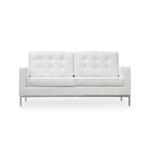 AS IMAGENS SÃO MERAMENTE ILUSTRATIVAS E PODEM SOFRER VARIAÇÕES DE COR E PEQUENOS DETALHES DE ACORDO COM O SEU MONITOR, ILUMINAÇÃO DO AMBIENTE E ATÉ MESMO A SUA PERCEPÇÃO VISUAL.Sofà Fixo Florence Knoll 2 Lugares Inox em Couro Natural Branco
