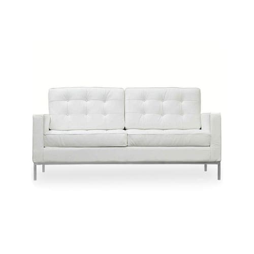 AS IMAGENS SÃO MERAMENTE ILUSTRATIVAS E PODEM SOFRER VARIAÇÕES DE COR E PEQUENOS DETALHES DE ACORDO COM O SEU MONITOR, ILUMINAÇÃO DO AMBIENTE E ATÉ MESMO A SUA PERCEPÇÃO VISUAL.Sofà Fixo Florence Knoll 2 Lugares Inox em SintÃtico Branco