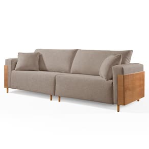 Sofá Fixo Heitor 3 Lugares Luxo Pé de Madeira 1,80m Castellar Móbile Linho Cappuccino - Bege