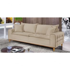 Com um visual elegante e moderno, o sofá conta com detalhes que valorizam o seu ambiente. Composto com capa nos braços, a base inteira com pés delicados, almofadas e o assento com pillow top capitonê, esse tipo de móvel oferece um maior conforto e beleza.