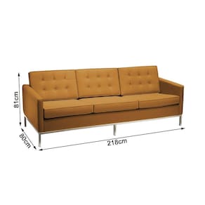Sofá Florence Knoll 3 Lugares Cromado Em Couro Natural Caramelo