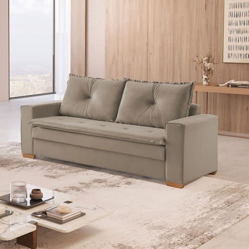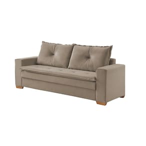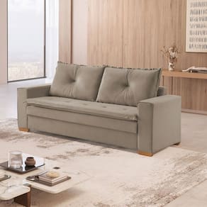 Este sofá de 3 lugares, estofado em linho de alta qualidade, combina elegância e conforto em um design contemporâneo. Ideal para acomodar a família ou receber convidados, oferece um toque suave e aconchegante, além de adicionar um charme sofisticado ao ambiente. Perfeito para quem valoriza estilo e bem-estar em seu lar. Produto Montado: Sim Acompanha Almofadas extras: Não Almofada do assento: Não Possui Almofada do encosto: Removível Altura do assento até o chão: 45.0000 Altura do Encosto: 92 cm Ambiente Principal: Sala de Estar codigo_ean: 7909903856635 Complexidade da Montagem: Baixa: pode ser montado por uma pessoa sozinha Cor: Bege Cor do Produto: Bege Densidade do Assento: D-28 Enchimento do Assento: Espuma Firmeza do Assento: Macio Itens Inclusos: 1 sofá de 3 lugares. Linha ou Coleção: Florianópolis Marca: Lufer Estofados Material dos Pés: Madeira Maciça Necessita Montagem: Sim Peso: 34,5 kg Pet Friendly: Não Possui Percintas Elásticas: Não Possui Pés: 05 Possui Rodízio: Não Recomendações de Uso, Manutenção e Limpeza: Usar pano seco e pano levemente umedecido, evitar alvejantes e produtos de limpeza. Sistema de Montagem: Encaixe. Suporta Até (kg): 120 kg Tecido Predominante: Veludo Tipo de Encosto: Fixo Tipo de Mola: Molas Nozag