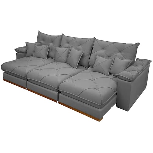 Sofá Gran Plus 320cm em Veludo com Molas Ensacadas 6 Lugares 3 Módulos Retrátil e Reclinável Império Conheça o incrível Sofá Gran Plus 320cm em Veludo com Molas Ensacadas 6 Lugares 3 Módulos Retrátil e Reclinável Império! Este sofá é o rei da sala, pronto para trazer conforto e elegância para o seu lar. Imagine-se afundando neste sofá macio e acolhedor após um longo dia de trabalho, com a sensação de estar sentado em uma nuvem fofinha. Com 320cm de puro conforto, este sofá é perfeito para relaxar ou receber os amigos e familiares para uma noite de filmes e pipoca. Por que escolher o Sofá Gran Plus? Este sofá é reclinável e retrátil, permitindo que você encontre a posição perfeita para assistir TV ou tirar uma soneca relaxante. As molas ensacadas garantem apoio e durabilidade, enquanto o tecido de veludo traz um toque luxuoso e sofisticado para a sua sala. Além disso, o Sofá Gran Plus é espaçoso o suficiente para acomodar até 6 pessoas, então não se preocupe em escolher quem pode sentar em seu assento super confortável. Agora todos podem desfrutar juntos dos momentos especiais. Adquira o Sofá Gran Plus 320cm em Veludo com Molas Ensacadas 6 Lugares 3 Módulos Retrátil e Reclinável Império hoje mesmo e transforme sua sala em um paraíso do conforto e estilo!\nMEDIDAS\nAltura 110cm\nLargura 320cm\nProfundidade Fechado 120cm\nProfundidade Aberto 180cm\nCARACTERÍSTICAS\nFabricante Império\nModelo Sofá Gran Plus 320cm em Veludo\nGarantia 3 meses\nTipo de produto Sofá Retrátil e Reclinável\nAmbiente Sala\nAssento Retrátil com Percinta Elástica, Pillow de 26cm, Molas Ensacadas e Espuma D28\nEncosto Reclinável em 5 Posições, Preenchido com Fibra Siliconada\nMaterial Pés Madeira Maciça\nRevestimento Veludo\nPossui Rodízios de Silicone Sim\nAcompanha Almofadas Sim\nINFORMAÇÕES IMPORTANTES\nObjetos decorativos que porventura apareçam na foto, não acompanham o produto. Não nos responsabilizamos pela montagem/instalação dos produtos.\nMontagens, desmontagens e instalações são responsabilidades do cliente. Indicamos que contrate uma empresa de montagem ou um montador de sua confiança.\nAlém disso, favor verificar se os pés e acessórios estão dentro do forro inferior do produto. Em suma, todas as informações divulgadas sobre o produto são de responsabilidade do Fabricante.\nAs cores do produto podem variar de acordo com o seu monitor, a iluminação do ambiente em que você está e até mesmo a sua percepção visual. Além da cor, pequenos detalhes e acabamentos podem não ficar evidentes na foto, por isso as imagens são meramente ilustrativas