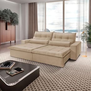 Assento: Retratil com percinta elastica, molas espirais, espuma D-28, pillow de 15 cm, molas ensacadas e matelasse.