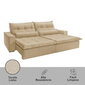 Assento: Retratil com percinta elastica, molas espirais, espuma D-28, pillow de 15 cm, molas ensacadas e matelasse.
