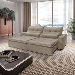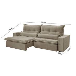 Assento: Retratil com percinta elastica, molas espirais, espuma D-28, pillow de 15 cm, molas ensacadas e matelasse.