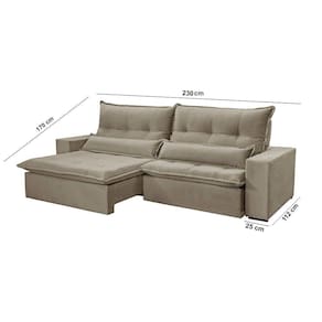 Assento: Retratil com percinta elastica, molas espirais, espuma D-28, pillow de 15 cm, molas ensacadas e matelasse.