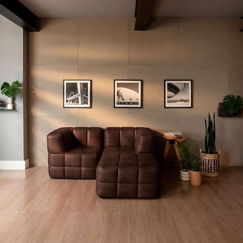 sofá guldi popup com 2 módulos canto e puff corino café - Marrom Escuro