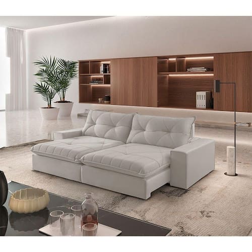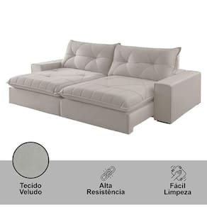 Assento: Com Percinta elastica, molas ensacadas e molas espirais, espuma D-28, pillow de 20 cm e matelasse.