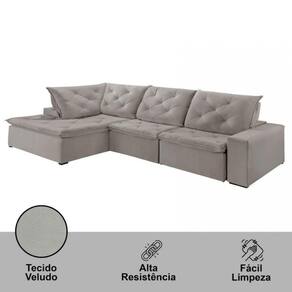 Sofá Hércules Veludo 2 Módulos 90cm Chaise Meu Sofá Online B026 Veludo Prata Sofa Hercules Veludo 2 Modulos 90cm B25cm+Chaise 130cm Meu Sofa Online O assento e retratil, incorporando percintas elasticas e molas espirais, com um pillow de 12 cm de espessura e espuma D28, finalizada com um acabamento matelasse. O encosto e reclinavel ate 90 graus e possui almofadas recheadas com fibras siliconadas, alem de contar com catracas blindadas para maior durabilidade e seguranca.