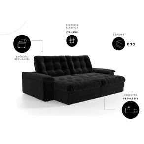 Sofá Houston Retrátil e Reclinável 3 Lugares Suede 210cm Abertura 140cm
