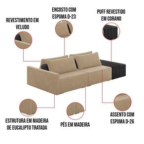 O Sofá Ilha 2 Lugares Living Lary de 232 cm é uma peça de destaque para qualquer ambiente, com um design moderno este sofá apresenta uma estrutura modular permitindo reorganizá-la criando um layout personalizado. Revestido no luxuoso tecido Veludo em um tom envolvente de Bege, proporcionando uma sensação de aconchego e sofisticação. Seu assento é fixo em espuma D-26 com multimolas de sustentação espiral e ensacadas, solda dupla, manta acrílica e percintas elásticas, suportando até 150 kg por assento. Já o encosto possui espuma D-23 sendo ele removível, com almofadas soltas preenchidas com 100% de fibra siliconada, proporcionando um apoio macio para as costas. Os pés são feitos em madeira certificando maior estabilidade ao móvel. Este sofá apresenta características de alta qualidade, incluindo uma estrutura de madeira tratada de eucalipto reflorestada, garantindo maior resistência e durabilidade ao produto, além de contribuir para a sustentabilidade ambiental. Com cinco assentos no total, um deles revestido em tecido Sintético Pu Preto com detalhes em gomos feito com a técnica de costura pespontos, este sofá oferece espaço suficiente para acomodar confortavelmente até seis pessoas, tornando-o ideal para receber amigos e familiares com estilo e conforto. Pode ser utilizado em escritórios, restaurantes e demais ambientes corporativos.O Sofá Lary é a escolha perfeita para quem busca uma peça de mobiliário que une funcionalidade, conforto e estilo em uma única solução para o seu ambiente. Aproveite!