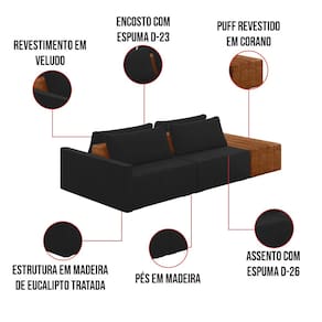 O Sofá Ilha 2 Lugares Living Lary de 252 cm é uma peça de destaque para qualquer ambiente, com um design moderno este sofá apresenta uma estrutura modular permitindo reorganizá-la criando um layout personalizado. Revestido no luxuoso tecido Veludo, proporcionando uma sensação de aconchego e sofisticação. Seu assento é fixo em espuma D-26 com multimolas de sustentação espiral e ensacadas, solda dupla, manta acrílica e percintas elásticas, suportando até 150 kg por assento. Já o encosto possui espuma D-23 sendo ele removível, com almofadas soltas preenchidas com 100% de fibra siliconada, proporcionando um apoio macio para as costas. Os pés são feitos em madeira certificando maior estabilidade ao móvel. Este sofá apresenta características de alta qualidade, incluindo uma estrutura de madeira tratada de eucalipto reflorestada, garantindo maior resistência e durabilidade ao produto, além de contribuir para a sustentabilidade ambiental. Com cinco assentos no total, um deles revestido em tecido Sintético Pu Nozes com detalhes em gomos feito com a técnica de costura pespontos, este sofá oferece espaço suficiente para acomodar confortavelmente até seis pessoas, tornando-o ideal para receber amigos e familiares com estilo e conforto. Pode ser utilizado em escritórios, restaurantes e demais ambientes corporativos.O Sofá Lary é a escolha perfeita para quem busca uma peça de mobiliário que une funcionalidade, conforto e estilo em uma única solução para o seu ambiente. Aproveite!