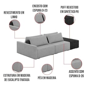 O Sofá Ilha 2 Lugares Living Lary de 272 cm é uma peça de destaque para qualquer ambiente, com um design moderno este sofá apresenta uma estrutura modular permitindo reorganizá-la criando um layout personalizado. Revestido no luxuoso tecido Linho em um tom envolvente de Cinza, proporcionando uma sensação de aconchego e sofisticação. Seu assento é fixo em espuma D-26 com multimolas de sustentação espiral e ensacadas, solda dupla, manta acrílica e percintas elásticas, suportando até 150 kg por assento. Já o encosto possui espuma D-23 sendo ele removível, com almofadas soltas preenchidas com 100% de fibra siliconada, proporcionando um apoio macio para as costas. Os pés são feitos em madeira certificando maior estabilidade ao móvel. Este sofá apresenta características de alta qualidade, incluindo uma estrutura de madeira tratada de eucalipto reflorestada, garantindo maior resistência e durabilidade ao produto, além de contribuir para a sustentabilidade ambiental. Com cinco assentos no total, um deles revestido em tecido Sintético Pu Preto com detalhes em gomos feito com a técnica de costura pespontos, este sofá oferece espaço suficiente para acomodar confortavelmente até seis pessoas, tornando-o ideal para receber amigos e familiares com estilo e conforto. Pode ser utilizado em escritórios, restaurantes e demais ambientes corporativos.O Sofá Lary é a escolha perfeita para quem busca uma peça de mobiliário que une funcionalidade, conforto e estilo em uma única solução para o seu ambiente. Aproveite!