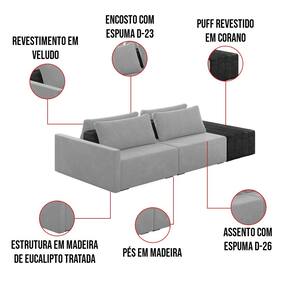 O Sofá Ilha 2 Lugares Living Lary de 272 cm é uma peça de destaque para qualquer ambiente, com um design moderno este sofá apresenta uma estrutura modular permitindo reorganizá-la criando um layout personalizado. Revestido no luxuoso tecido Veludo, proporcionando uma sensação de aconchego e sofisticação. Seu assento é fixo em espuma D-26 com multimolas de sustentação espiral e ensacadas, solda dupla, manta acrílica e percintas elásticas, suportando até 150 kg por assento. Já o encosto possui espuma D-23 sendo ele removível, com almofadas soltas preenchidas com 100% de fibra siliconada, proporcionando um apoio macio para as costas. Os pés são feitos em madeira certificando maior estabilidade ao móvel. Este sofá apresenta características de alta qualidade, incluindo uma estrutura de madeira tratada de eucalipto reflorestada, garantindo maior resistência e durabilidade ao produto, além de contribuir para a sustentabilidade ambiental. Com cinco assentos no total, um deles revestido em tecido Sintético Pu Preto com detalhes em gomos feito com a técnica de costura pespontos, este sofá oferece espaço suficiente para acomodar confortavelmente até seis pessoas, tornando-o ideal para receber amigos e familiares com estilo e conforto. Pode ser utilizado em escritórios, restaurantes e demais ambientes corporativos.O Sofá Lary é a escolha perfeita para quem busca uma peça de mobiliário que une funcionalidade, conforto e estilo em uma única solução para o seu ambiente. Aproveite!