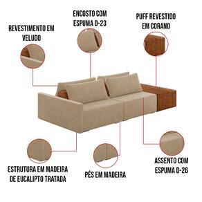 Sofá Ilha 2 Lugares Living 292cm Modulado para Sala Lary Veludo K01 - D`Rossi - Bege