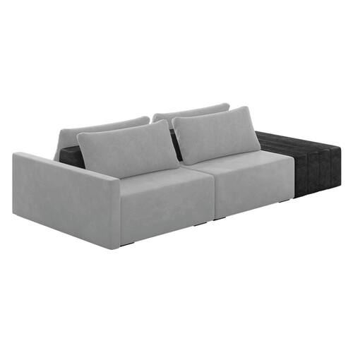 Diferenciais: Sofá modular, estilo ilha, pode ser aproveitado assentos em ambos os lados. Acompanha almofadas. Ideal para sala de estar, living e ambientes integrados