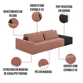 O Sofá Ilha 2 Lugares Living Lary de 292 cm é uma peça de destaque para qualquer ambiente, com um design moderno este sofá apresenta uma estrutura modular permitindo reorganizá-la criando um layout personalizado. Revestido no luxuoso tecido Veludo, proporcionando uma sensação de aconchego e sofisticação. Seu assento é fixo em espuma D-26 com multimolas de sustentação espiral e ensacadas, solda dupla, manta acrílica e percintas elásticas, suportando até 150 kg por assento. Já o encosto possui espuma D-23 sendo ele removível, com almofadas soltas preenchidas com 100% de fibra siliconada, proporcionando um apoio macio para as costas. Os pés são feitos em madeira certificando maior estabilidade ao móvel. Este sofá apresenta características de alta qualidade, incluindo uma estrutura de madeira tratada de eucalipto reflorestada, garantindo maior resistência e durabilidade ao produto, além de contribuir para a sustentabilidade ambiental. Com cinco assentos no total, um deles revestido em tecido Sintético Pu Preto com detalhes em gomos feito com a técnica de costura pespontos, este sofá oferece espaço suficiente para acomodar confortavelmente até seis pessoas, tornando-o ideal para receber amigos e familiares com estilo e conforto. Pode ser utilizado em escritórios, restaurantes e demais ambientes corporativos.O Sofá Lary é a escolha perfeita para quem busca uma peça de mobiliário que une funcionalidade, conforto e estilo em uma única solução para o seu ambiente. Aproveite!