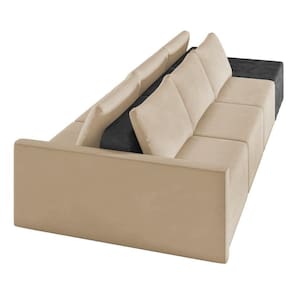 Sofá Ilha 3 Lugares Living 312cm Modulado Lary Veludo Pu Pto K01 Cor Verde