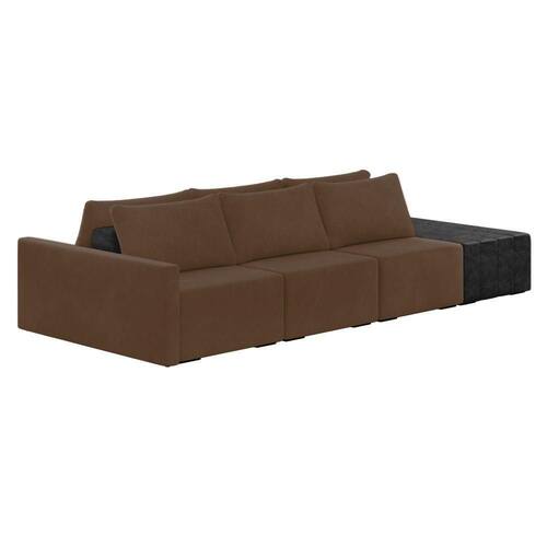 O Sofá Ilha 3 Lugares Living Lary de 342 cm é uma peça de destaque para qualquer ambiente, com um design moderno este sofá apresenta uma estrutura modular permitindo reorganizá-la criando um layout personalizado. Revestido no luxuoso tecido Veludo em um tom envolvente de Marrom, proporcionando uma sensação de aconchego e sofisticação. Seu assento é fixo em espuma D-26 com multimolas de sustentação espiral e ensacadas, solda dupla, manta acrílica e percintas elásticas, suportando até 150 kg por assento. Já o encosto possui espuma D-23 sendo ele removível, com almofadas soltas preenchidas com 100% de fibra siliconada, proporcionando um apoio macio para as costas. Os pés são feitos em madeira certificando maior estabilidade ao móvel. Este sofá apresenta características de alta qualidade, incluindo uma estrutura de madeira tratada de eucalipto reflorestada, garantindo maior resistência e durabilidade ao produto, além de contribuir para a sustentabilidade ambiental. Com sete assentos no total, um deles revestido em tecido Sintético Pu Preto com detalhes em gomos feito com a técnica de costura pespontos, este sofá oferece espaço suficiente para acomodar confortavelmente até oito pessoas, tornando-o ideal para receber amigos e familiares com estilo e conforto. Pode ser utilizado em escritórios, restaurantes e demais ambientes corporativos.O Sofá Lary é a escolha perfeita para quem busca uma peça de mobiliário que une funcionalidade, conforto e estilo em uma única solução para o seu ambiente. Aproveite!