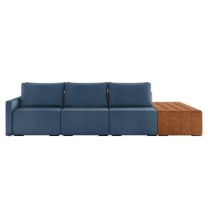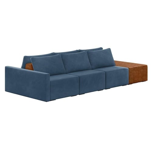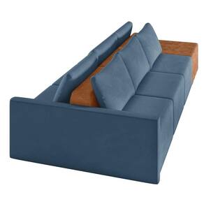 Sofá Ilha 3 Lugares Living 402cm Modulado Lary Veludo K01 Cor Azul Marinho