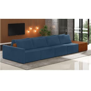 O Sofá Ilha 4 Lugares Living Lary de 392 cm é uma peça de destaque para qualquer ambiente, com um design moderno este sofá apresenta uma estrutura modular permitindo reorganizá-la criando um layout personalizado. Revestido no luxuoso tecido Veludo em um tom envolvente de Azul Marinho, proporcionando uma sensação de aconchego e sofisticação. Seu assento é fixo em espuma D-26 com multimolas de sustentação espiral e ensacadas, solda dupla, manta acrílica e percintas elásticas, suportando até 150 kg por assento. Já o encosto possui espuma D-23 sendo ele removível, com almofadas soltas preenchidas com 100% de fibra siliconada, proporcionando um apoio macio para as costas. Os pés são feitos em madeira certificando maior estabilidade ao móvel. Este sofá apresenta características de alta qualidade, incluindo uma estrutura de madeira tratada de eucalipto reflorestada, garantindo maior resistência e durabilidade ao produto, além de contribuir para a sustentabilidade ambiental. Com nove assentos no total, um deles revestido em tecido Sintético Pu Nozes com detalhes em gomos feito com a técnica de costura pespontos, este sofá oferece espaço suficiente para acomodar confortavelmente até dez pessoas, tornando-o ideal para receber amigos e familiares com estilo e conforto. Pode ser utilizado em escritórios, restaurantes e demais ambientes corporativos.O Sofá Lary é a escolha perfeita para quem busca uma peça de mobiliário que une funcionalidade, conforto e estilo em uma única solução para o seu ambiente. Aproveite!