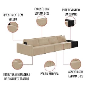 O Sofá Ilha 4 Lugares Living Lary de 392 cm é uma peça de destaque para qualquer ambiente, com um design moderno este sofá apresenta uma estrutura modular permitindo reorganizá-la criando um layout personalizado. Revestido no luxuoso tecido Veludo, proporcionando uma sensação de aconchego e sofisticação. Seu assento é fixo em espuma D-26 com multimolas de sustentação espiral e ensacadas, solda dupla, manta acrílica e percintas elásticas, suportando até 150 kg por assento. Já o encosto possui espuma D-23 sendo ele removível, com almofadas soltas preenchidas com 100% de fibra siliconada, proporcionando um apoio macio para as costas. Os pés são feitos em madeira certificando maior estabilidade ao móvel. Este sofá apresenta características de alta qualidade, incluindo uma estrutura de madeira tratada de eucalipto reflorestada, garantindo maior resistência e durabilidade ao produto, além de contribuir para a sustentabilidade ambiental. Com nove assentos no total, um deles revestido em tecido Sintético Pu Preto com detalhes em gomos feito com a técnica de costura pespontos, este sofá oferece espaço suficiente para acomodar confortavelmente até dez pessoas, tornando-o ideal para receber amigos e familiares com estilo e conforto. Pode ser utilizado em escritórios, restaurantes e demais ambientes corporativos.O Sofá Lary é a escolha perfeita para quem busca uma peça de mobiliário que une funcionalidade, conforto e estilo em uma única solução para o seu ambiente. Aproveite!