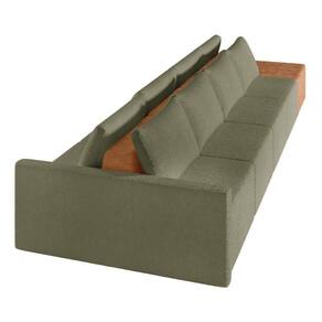 O Sofá Ilha 4 Lugares Living Lary de 512 cm é uma peça de destaque para qualquer ambiente, com um design moderno este sofá apresenta uma estrutura modular permitindo reorganizá-la criando um layout personalizado. Revestido no luxuoso tecido Bouclê em um tom envolvente de Verde, proporcionando uma sensação de aconchego e sofisticação. Seu assento é fixo em espuma D-26 com multimolas de sustentação espiral e ensacadas, solda dupla, manta acrílica e percintas elásticas, suportando até 150 kg por assento. Já o encosto possui espuma D-23 sendo ele removível, com almofadas soltas preenchidas com 100% de fibra siliconada, proporcionando um apoio macio para as costas. Os pés são feitos em madeira certificando maior estabilidade ao móvel. Este sofá apresenta características de alta qualidade, incluindo uma estrutura de madeira tratada de eucalipto reflorestada, garantindo maior resistência e durabilidade ao produto, além de contribuir para a sustentabilidade ambiental. Com nove assentos no total, um deles revestido em tecido Sintético Pu Nozes com detalhes em gomos feito com a técnica de costura pespontos, este sofá oferece espaço suficiente para acomodar confortavelmente até dez pessoas, tornando-o ideal para receber amigos e familiares com estilo e conforto. Pode ser utilizado em escritórios, restaurantes e demais ambientes corporativos.O Sofá Lary é a escolha perfeita para quem busca uma peça de mobiliário que une funcionalidade, conforto e estilo em uma única solução para o seu ambiente. Aproveite!