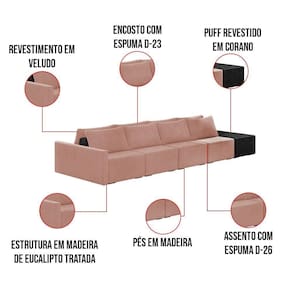 O Sofá Ilha 4 Lugares Living Lary de 512 cm é uma peça de destaque para qualquer ambiente, com um design moderno este sofá apresenta uma estrutura modular permitindo reorganizá-la criando um layout personalizado. Revestido no luxuoso tecido Veludo, proporcionando uma sensação de aconchego e sofisticação. Seu assento é fixo em espuma D-26 com multimolas de sustentação espiral e ensacadas, solda dupla, manta acrílica e percintas elásticas, suportando até 150 kg por assento. Já o encosto possui espuma D-23 sendo ele removível, com almofadas soltas preenchidas com 100% de fibra siliconada, proporcionando um apoio macio para as costas. Os pés são feitos em madeira certificando maior estabilidade ao móvel. Este sofá apresenta características de alta qualidade, incluindo uma estrutura de madeira tratada de eucalipto reflorestada, garantindo maior resistência e durabilidade ao produto, além de contribuir para a sustentabilidade ambiental. Com nove assentos no total, um deles revestido em tecido Sintético Pu Preto com detalhes em gomos feito com a técnica de costura pespontos, este sofá oferece espaço suficiente para acomodar confortavelmente até dez pessoas, tornando-o ideal para receber amigos e familiares com estilo e conforto. Pode ser utilizado em escritórios, restaurantes e demais ambientes corporativos.O Sofá Lary é a escolha perfeita para quem busca uma peça de mobiliário que une funcionalidade, conforto e estilo em uma única solução para o seu ambiente. Aproveite!