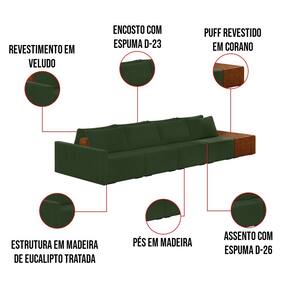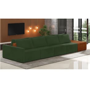 O Sofá Ilha 4 Lugares Living Lary de 512 cm é uma peça de destaque para qualquer ambiente, com um design moderno este sofá apresenta uma estrutura modular permitindo reorganizá-la criando um layout personalizado. Revestido no luxuoso tecido Veludo, proporcionando uma sensação de aconchego e sofisticação. Seu assento é fixo em espuma D-26 com multimolas de sustentação espiral e ensacadas, solda dupla, manta acrílica e percintas elásticas, suportando até 150 kg por assento. Já o encosto possui espuma D-23 sendo ele removível, com almofadas soltas preenchidas com 100% de fibra siliconada, proporcionando um apoio macio para as costas. Os pés são feitos em madeira certificando maior estabilidade ao móvel. Este sofá apresenta características de alta qualidade, incluindo uma estrutura de madeira tratada de eucalipto reflorestada, garantindo maior resistência e durabilidade ao produto, além de contribuir para a sustentabilidade ambiental. Com nove assentos no total, um deles revestido em tecido Sintético Pu Nozes com detalhes em gomos feito com a técnica de costura pespontos, este sofá oferece espaço suficiente para acomodar confortavelmente até dez pessoas, tornando-o ideal para receber amigos e familiares com estilo e conforto. Pode ser utilizado em escritórios, restaurantes e demais ambientes corporativos.O Sofá Lary é a escolha perfeita para quem busca uma peça de mobiliário que une funcionalidade, conforto e estilo em uma única solução para o seu ambiente. Aproveite!