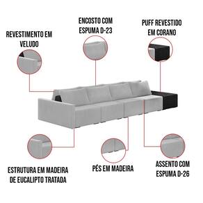 O Sofá Ilha 4 Lugares Living Lary de 512 cm é uma peça de destaque para qualquer ambiente, com um design moderno este sofá apresenta uma estrutura modular permitindo reorganizá-la criando um layout personalizado. Revestido no luxuoso tecido Veludo em um tom envolvente de Cinza, proporcionando uma sensação de aconchego e sofisticação. Seu assento é fixo em espuma D-26 com multimolas de sustentação espiral e ensacadas, solda dupla, manta acrílica e percintas elásticas, suportando até 150 kg por assento. Já o encosto possui espuma D-23 sendo ele removível, com almofadas soltas preenchidas com 100% de fibra siliconada, proporcionando um apoio macio para as costas. Os pés são feitos em madeira certificando maior estabilidade ao móvel. Este sofá apresenta características de alta qualidade, incluindo uma estrutura de madeira tratada de eucalipto reflorestada, garantindo maior resistência e durabilidade ao produto, além de contribuir para a sustentabilidade ambiental. Com nove assentos no total, um deles revestido em tecido Sintético Pu Preto com detalhes em gomos feito com a técnica de costura pespontos, este sofá oferece espaço suficiente para acomodar confortavelmente até dez pessoas, tornando-o ideal para receber amigos e familiares com estilo e conforto. Pode ser utilizado em escritórios, restaurantes e demais ambientes corporativos.O Sofá Lary é a escolha perfeita para quem busca uma peça de mobiliário que une funcionalidade, conforto e estilo em uma única solução para o seu ambiente. Aproveite!