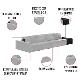 O Sofá Ilha 4 Lugares Living Lary de 512 cm é uma peça de destaque para qualquer ambiente, com um design moderno este sofá apresenta uma estrutura modular permitindo reorganizá-la criando um layout personalizado. Revestido no luxuoso tecido Veludo, proporcionando uma sensação de aconchego e sofisticação. Seu assento é fixo em espuma D-26 com multimolas de sustentação espiral e ensacadas, solda dupla, manta acrílica e percintas elásticas, suportando até 150 kg por assento. Já o encosto possui espuma D-23 sendo ele removível, com almofadas soltas preenchidas com 100% de fibra siliconada, proporcionando um apoio macio para as costas. Os pés são feitos em madeira certificando maior estabilidade ao móvel. Este sofá apresenta características de alta qualidade, incluindo uma estrutura de madeira tratada de eucalipto reflorestada, garantindo maior resistência e durabilidade ao produto, além de contribuir para a sustentabilidade ambiental. Com nove assentos no total, um deles revestido em tecido Sintético Pu Preto com detalhes em gomos feito com a técnica de costura pespontos, este sofá oferece espaço suficiente para acomodar confortavelmente até dez pessoas, tornando-o ideal para receber amigos e familiares com estilo e conforto. Pode ser utilizado em escritórios, restaurantes e demais ambientes corporativos.O Sofá Lary é a escolha perfeita para quem busca uma peça de mobiliário que une funcionalidade, conforto e estilo em uma única solução para o seu ambiente. Aproveite!