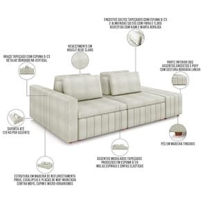 Sofá Ilha Com Puff Para Sala Living 245cm Amber M03 Bouclê Bege Claro - Lyam Decor
