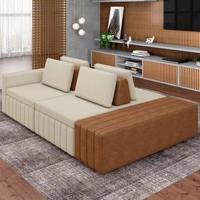 Desenvolvido para preencher de forma majestosa e integrar harmoniosamente os ambientes integrados, o Sofá Ilha com Puff para Sala Living 285cm Amber, da Lyam Decor, é perfeito para agregar funcionalidade e conforto, enquanto se mostra como uma verdade obra de arte no ambiente. Em outras palavras, esse sofá modulado vai permitir a setorização da área social, sem a necessidade de paredes. Assim, você poderá aproveitar do conceito aberto entre living e sala de tv ou, ainda, sala de estar e cozinha para desfrutar de momentos inesquecíveis com a família e amigos; afinal, lugares para recebe-los com aconchego não vão faltar. Além disso, os encostos e almofadas são soltos, a fim de oferecer mais dinamicidade de uso. Aproveite essa dualidade de estilo e modernidade e transforme o seu ambiente de um jeito versátil com o Sofá Ilha com Puff Amber.