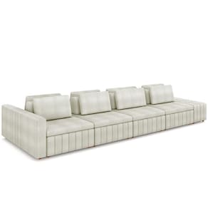 Versátil e imponente, o Sofá Ilha com Puff para Sala Living 465cm Amber, da Lyam Decor, é perfeito para quem procura um estofado com a proposta de integrar ambientes com fluidez, além de agregar beleza e conforto. Em outras palavras, esse sofá modulado vai permitir a setorização da área social, sem a necessidade de paredes. Assim, você poderá aproveitar do conceito aberto entre living e sala de ou, ainda, sala de estar e cozinha para desfrutar de momentos inesquecíveis com a família e amigos; afinal, lugares para recebe-los com aconchego não vão faltar. Além disso, os encostos e almofadas são soltos, a fim de oferecer mais dinamicidade de uso. Aproveite essa dualidade de estilo e modernidade e transforme o seu ambiente de um jeito harmonioso e impactante com o Sofá Ilha com Puff Amber.