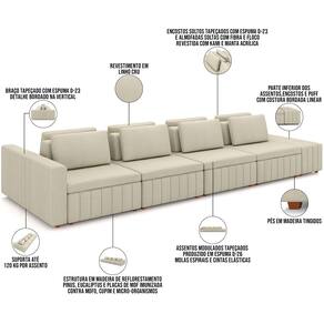 Desenvolvido para preencher de forma majestosa e integrar harmoniosamente os ambientes integrados, o Sofá Ilha com Puff para Sala Living 505cm Amber, da Lyam Decor, é perfeito para agregar funcionalidade e conforto, enquanto se mostra como uma verdade obra de arte no ambiente. Em outras palavras, esse sofá modulado vai permitir a setorização da área social, sem a necessidade de paredes. Assim, você poderá aproveitar do conceito aberto entre living e sala de tv ou, ainda, sala de estar e cozinha para desfrutar de momentos inesquecíveis com a família e amigos; afinal, lugares para recebe-los com aconchego não vão faltar. Além disso, os encostos e almofadas são soltos, a fim de oferecer mais dinamicidade de uso. Aproveite essa dualidade de estilo e modernidade e transforme o seu ambiente de um jeito versátil com o Sofá Ilha com Puff Amber.