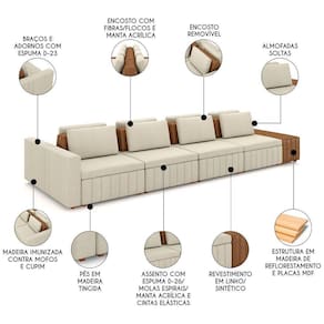 Quantidade de Assento: 4 Assentos no Sofá, 1 Assento no Puff.
