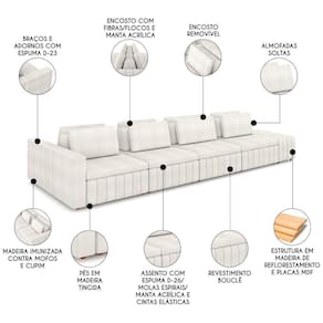 Procurando um sofá que seja perfeito para a sua sala de estar, living ou ambientes integrados? Conheça o Sofá Ilha com Puff Para Sala Living 505cm Siesta M22 Boucle Bege Claro, da Mpozenato, um móvel que combina design moderno e funcionalidade em uma só peça.