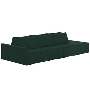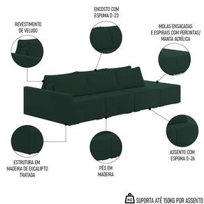 Eleve seu espaço de convivência a novos patamares de luxo com o Sofá Ilha Modular com Puff para Sala Living 312cm Georgia K04 Veludo Verde, da Mpozenato!