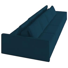 Eleve seu espaço de convivência a novos patamares de luxo com o Sofá Ilha Modular com Puff para Sala Living 432cm Georgia K04 Veludo Azul, da Mpozenato!