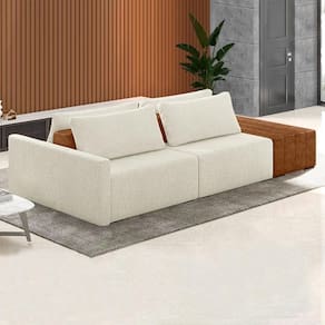 Eleve seu espaço de convivência a patamares de luxo com o Sofá Ilha Modular Living com Puff 232cm Georgia Z08 Boucle Bege/Caramelo, da Mpozenato!