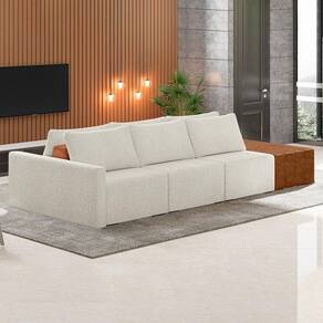 Dimensões do ProdutoLargura: 312 cm. Altura: 82 cm. Profundidade: 160 cm. Peso: 157 kg. Outras Medidas2x Módulo Central: 80 x 82 x 160 cm. 1x Módulo Lateral com Braço: 92 x 82 x 160 cm. Puff: 60 x 45 x 160 cm. Altura do Encosto: 37 cm. Altura do assento ao chão: 45 cm. Características do ProdutoMaterial da estrutura: Madeira de Eucalipto Tratada. Material do Assento: Espuma D-26/Molas Ensacadas e Espirais com Percintas/Manta Acrílica. Material do Encosto: Espuma D-23. Revestimento: Boucle/Sintético. Peso Suportado: 150 kg por assento. Quantidade de Assento: 7 Assentos. Quantidade de Lugares: Até 8 Lugares. Tipo de Encosto: Móvel. Tipo de Assento: Fixo. Material dos Pés: Madeira. É retrátil: Não. É reclinável: Não. Diferenciais: - Design moderno. - Sofá modular, estilo ilha, pode ser aproveitado assentos em ambos os lados. - Acompanha almofadas. - Ideal para sala de estar, living e Ambientes Integrados. Sistema de Montagem: O produto é enviado montado, sendo necessário apenas a junção dos módulos. Manual de Montagem: Não. Volumes: 4 Volumes. Conteúdo da Embalagem: 1 Sofá Modular. do Fabricante: 90 dias contra defeito de fabricação. Montagem: Recomendamos que seja feita por um . Recomendação de Limpeza: Utilize pano levemente úmido. Observações importantes- Produto para uso residencial em ambiente interno, não devendo ficar exposto diretamente ao sol, calor e umidades excessivas. - Pode haver alguma diferença de tonalidade entre a imagem e o produto real, por conta do tratamento de imagens e a calibração de cores do seu monitor. - As imagens são meramente ilustrativas, não acompanham objetos de decoração e eletrônicos. - Confira o estado da embalagem, não devendo assinar o comprovante em caso de danos. - Não asseguramos, no ato da , por subir escadas/elevadores, pelo transporte por guincho em apartamentos ou montagem, desmontagem e instalações. Eventuais despesas são por conta do comprador. - Confira as dimensões do produto e certifique-se de que passará normalmente por supostos elevadores, portas, escadas e/ou corredores de sua residência.