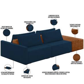 Revestimento em Veludo Azul e Sintético Caramelo.
