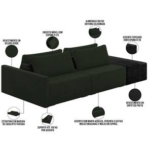 Revestimento em Veludo Verde e Sintético Preto.