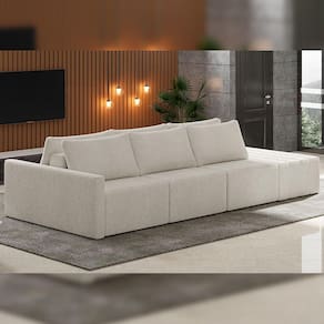 Design moderno, confortável e mais que versátil, o Sofá Ilha Modular para Sala 342cm com Puff Dublin, da Lyam Decor é estofado ideal para você que quer criar um ambiente aconchegante sem abrir mão da estética.