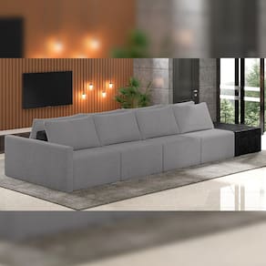 Design moderno, confortável e mais que versátil, o Sofá Ilha Modular para Sala 432cm com Puff Dublin, da Lyam Decor é estofado ideal para você que quer criar um ambiente aconchegante sem abrir mão da estética. Com esse sofá ilha ao mesmo tempo em que otimiza espaço, traz a sensação de composição entre a decoração, o que proporcionar uma conexão entre os ambientes do seu lar. Além disso, é um sofá modular, o que agrega ainda mais versatilidade e possibilidades de layout. Já o puff retangular bordado é um charme à parte e otimiza a quantidade de assentos. Incrivelmente lindo, não é mesmo? Aproveite!