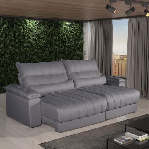 A capacidade retrátil e reclinável oferece flexibilidade, permitindo que você ajuste o sofá para o seu conforto ideal. A combinação de assentos 100% em molas e espuma D33 garante durabilidade e conforto superiores, enquanto as almofadas em mantas siliconadas adicionam um toque de luxo. Com sua impermeabilização, é resistente a derramamentos acidentais de água, o que é especialmente útil em ambientes familiares.