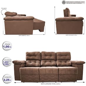Sofa Itália 2,25 Mts Retrátil E Reclinavel Tecido Suede Castor - Cama Inbox