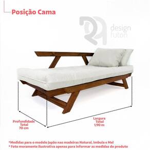 Material: Estrutura em madeira maciça.Futon: Produzido com espuma ortopédica, algodão puro e fibra de silicone, revestido em tecido de alta qualidade.Qualidade artesanal: Cada futon é produzido de forma artesanal, garantindo um produto único com excelente qualidade, conforto e design.