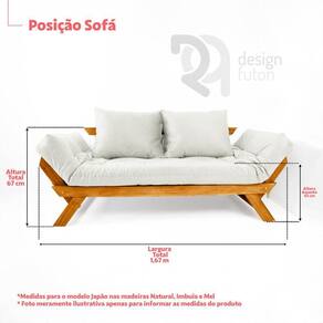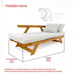 Material: Estrutura em madeira maciça.Futon: Produzido com espuma ortopédica, algodão puro e fibra de silicone, revestido em tecido de alta qualidade.Qualidade artesanal: Cada futon é produzido de forma artesanal, garantindo um produto único com excelente qualidade, conforto e design.